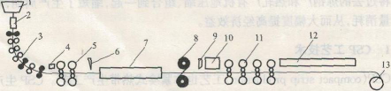 8一熱卷箱; 9一事數(shù)勇; 11一精事L機;12一層流冷卻; 13一卷取機