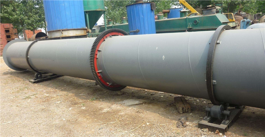 干燥的濕物料由皮帶輸送機或斗式提升機送到料斗,然后經料斗的加料機通過加料管道進入加料端。加料管道的斜度要大于物料的自然傾角,以便物料順利流入烘干機內。烘干機圓筒是一個與水平線略成傾斜的旋轉圓筒。物料從較高一端加入,載熱體由低端進入,與物料成逆流接觸,也有載熱體和物料一起并流進入筒體的。隨著圓筒的轉動物料受重力作用運行到較底的一端。濕物料在筒體內向前移動過程中,直接或間接*了載熱體的給熱,使濕物料得以烘干,然后在出料端經皮帶機或螺旋輸送機送出。