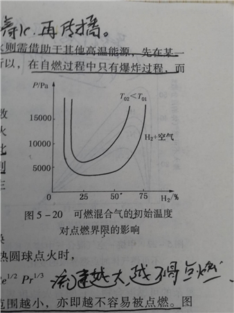提高可燃混合氣的初始溫度,對大多數烴類燃料與空氣的混合氣而言,可使其點火界限變寬,如圖5-20所示。其原因在于此時提高了反應的放熱率,而對散熱的影響則不大。實驗表明,溫度對著火界限的影響主要反映在上限,而對下限則沒有什么影響。