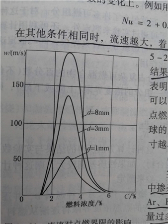 流速對點燃界限的影響主要表現在與換熱α有關的Nu數的變化上。例如用熾熱圓球點火時,