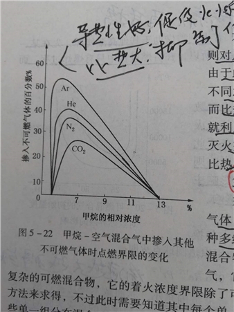 不同不可燃氣體若摻入比例相同時,則對點燃濃度界限的影響也不一樣。這是由于此時所組成可燃混合氣(λ/cp)值不同之故,導熱性能好能促使火焰傳播,而比熱大卻能抑制火焰傳播。在工程上就利用這種特性來制造滅火劑。一種好的滅火劑應該具有低的導熱系數和較大的比熱。