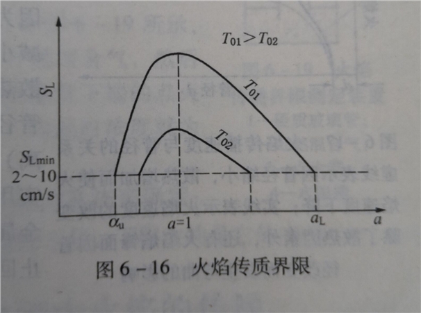 以前曾認(rèn)為火焰?zhèn)鞑ソ缦蘧褪荢L≈0時的參數(shù),且從進(jìn)一步的實(shí)驗(yàn)發(fā)現(xiàn),當(dāng)SL未接近零時就已發(fā)生淬熄現(xiàn)象。這是因?yàn)槿紵齾^(qū)對外散熱(通過導(dǎo)熱或熱輻射)的緣故??扇蓟旌蠚庖蛉剂线^貧或其他原因降低了燃燒溫度,導(dǎo)致了化學(xué)反應(yīng)速度變慢,使得SL減??;但這時散熱損失卻相對地增大,因而使燃燒溫度更加下降,*達(dá)到某一數(shù)值后火焰就不能再繼續(xù)傳播。實(shí)驗(yàn)表明,各種燃料相應(yīng)于火焰不能傳播時的*小很 限火焰?zhèn)鞑ニ俣葹? ~10cm/s,見圖6-16。