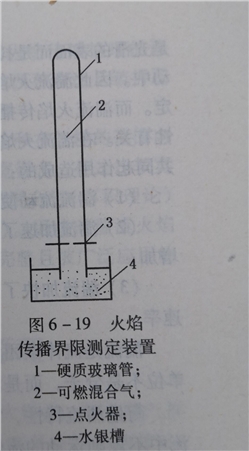 火焰?zhèn)鞑ソ缦抟话阃ㄟ^實(shí)驗(yàn)來確定,如圖6-19所示,在一端封閉的玻璃管內(nèi)充以一定濃度的可燃混合氣,然后把玻璃管開口端垂直浸人水銀槽內(nèi)。用玻璃管下端的點(diǎn)火器點(diǎn)火,若火焰不能傳播到管子上端時,則此時濃度就為火焰?zhèn)鞑舛冉缦蕖?br /> 鄭州中威環(huán)保設(shè)備有限公司多年經(jīng)驗(yàn)確定::傳播界限上限一般約是化學(xué)當(dāng)量計(jì)算濃度的3倍,下限大約是它的50%。